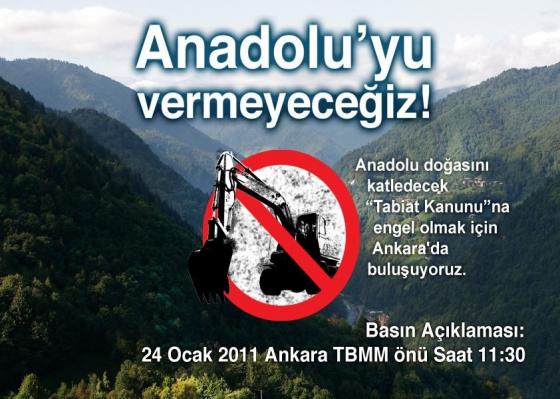 Kıyılarımız da derelerimiz, ırmaklarımız ve vadilerimiz gibi talan, yapılaşma ve imar baskısı altında. Tüm kamuyu ilgilendiren doğal kaynakların kullanılmasında, özünde korunması ve gelecek kuşaklara aktarılması beklenen doğal ve kültürel değerlerimiz, Türkiye’nin taraf olduğu uluslararası sözleşmeler hiçe sayılarak yok edilmeye doğru yol alıyor. SAD’ın da destek verdiği üzere, aşağıda adı geçen 180 den fazla grup, 24 Ocak 2011 Pazartesi saat 11:30’da Ankara’da TBMM’nin önünde Tabiatı ve Biyoçeşitliliği Koruma Kanun Tasarısı’nı protesto etmek için bir araya geliyor.